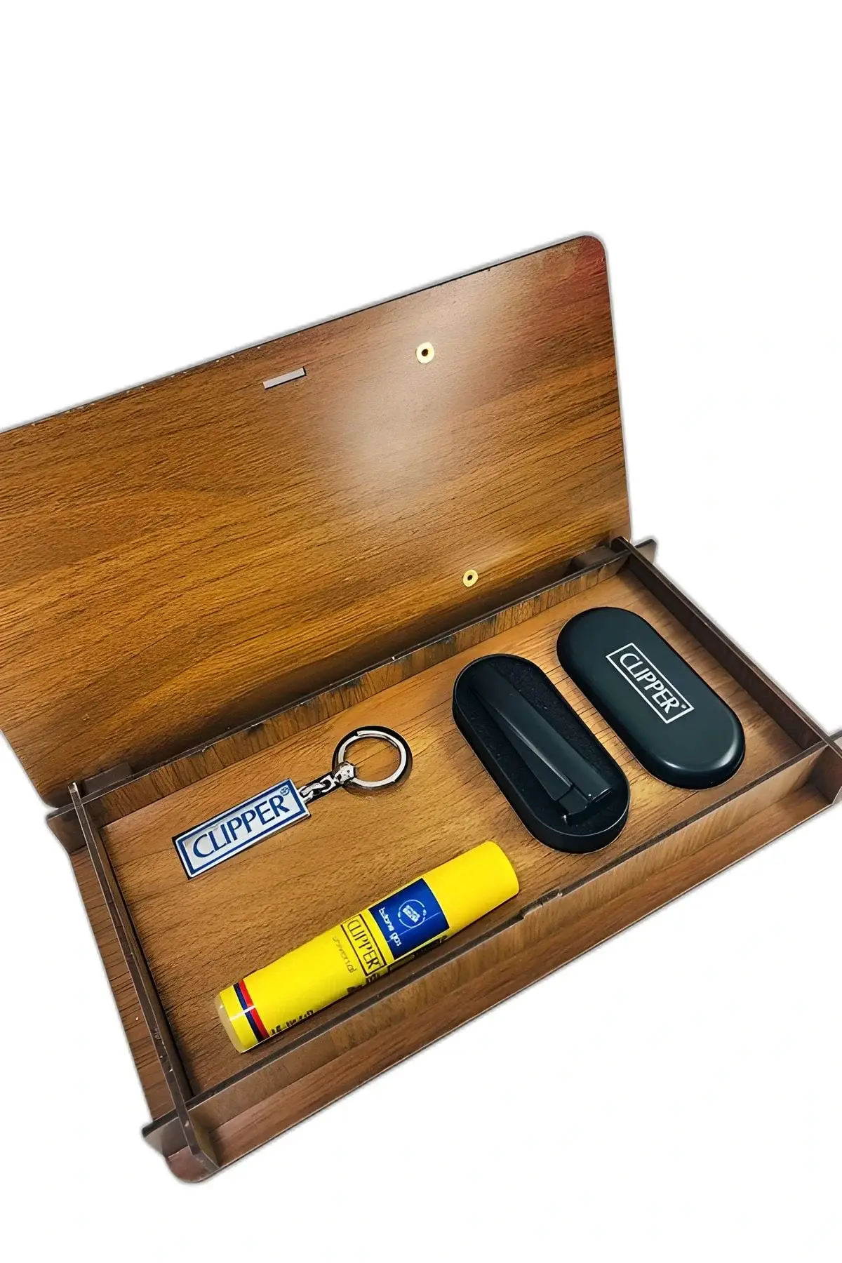 Ahşap Gazlı Metal Çakmak Seti Gaz 16 ml'dir. Set içeriği 1 adet anahtarlık 1 adet çakmak 1 adet gaz 1 adet metal kutu
