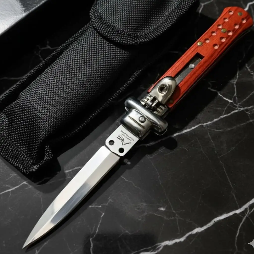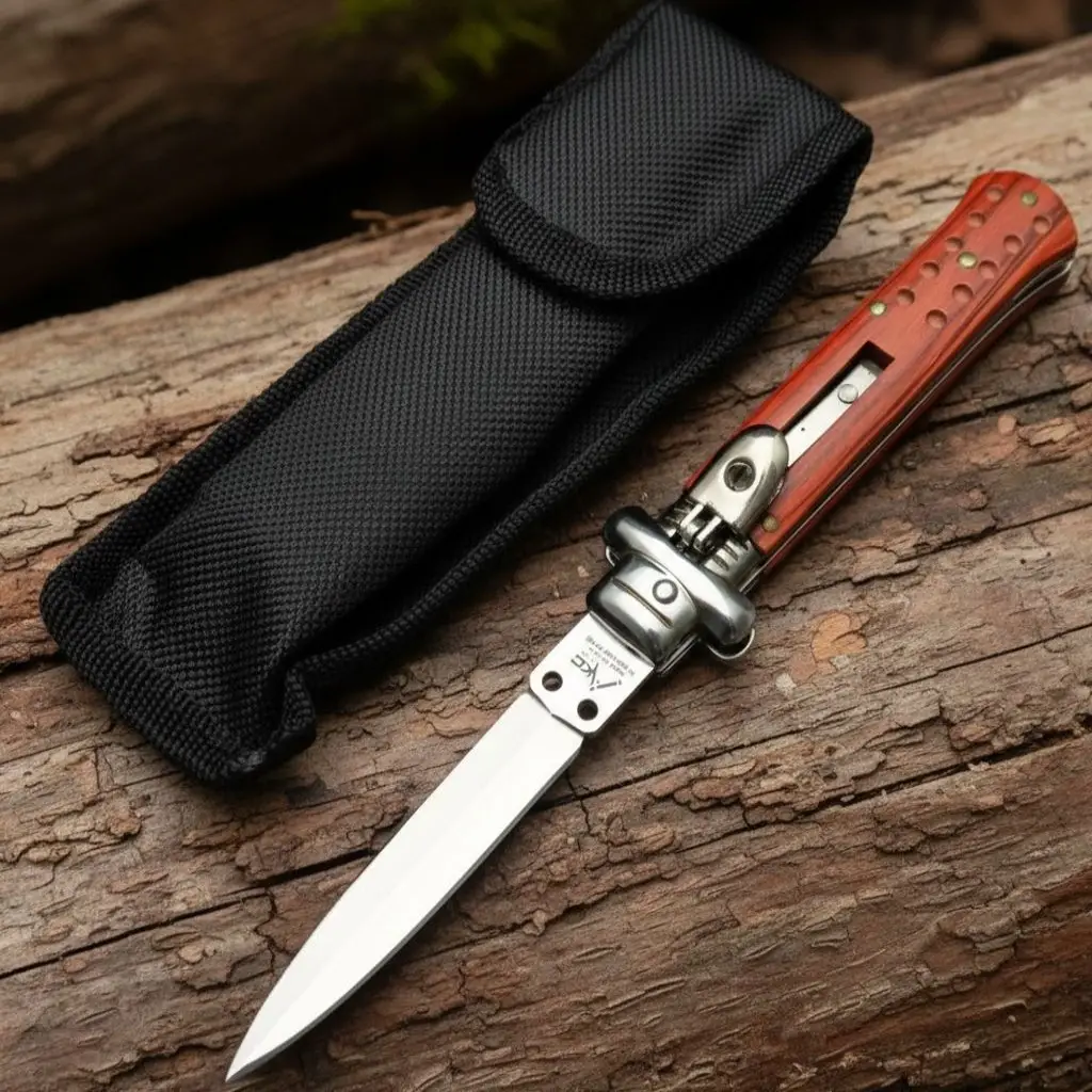 Doğa tutkunları ve koleksiyonerler için özel olarak tasarlanan Akc Mandallı Otomatik Kamp Çakısı, klasik İtalyan çizgilerini modern dayanıklılıkla birleştiriyor. Göz alıcı kırmızı polimer sapı ve keskin bayonet namlu yapısıyla hem işlevsel hem de estetik bir deneyim sunar.