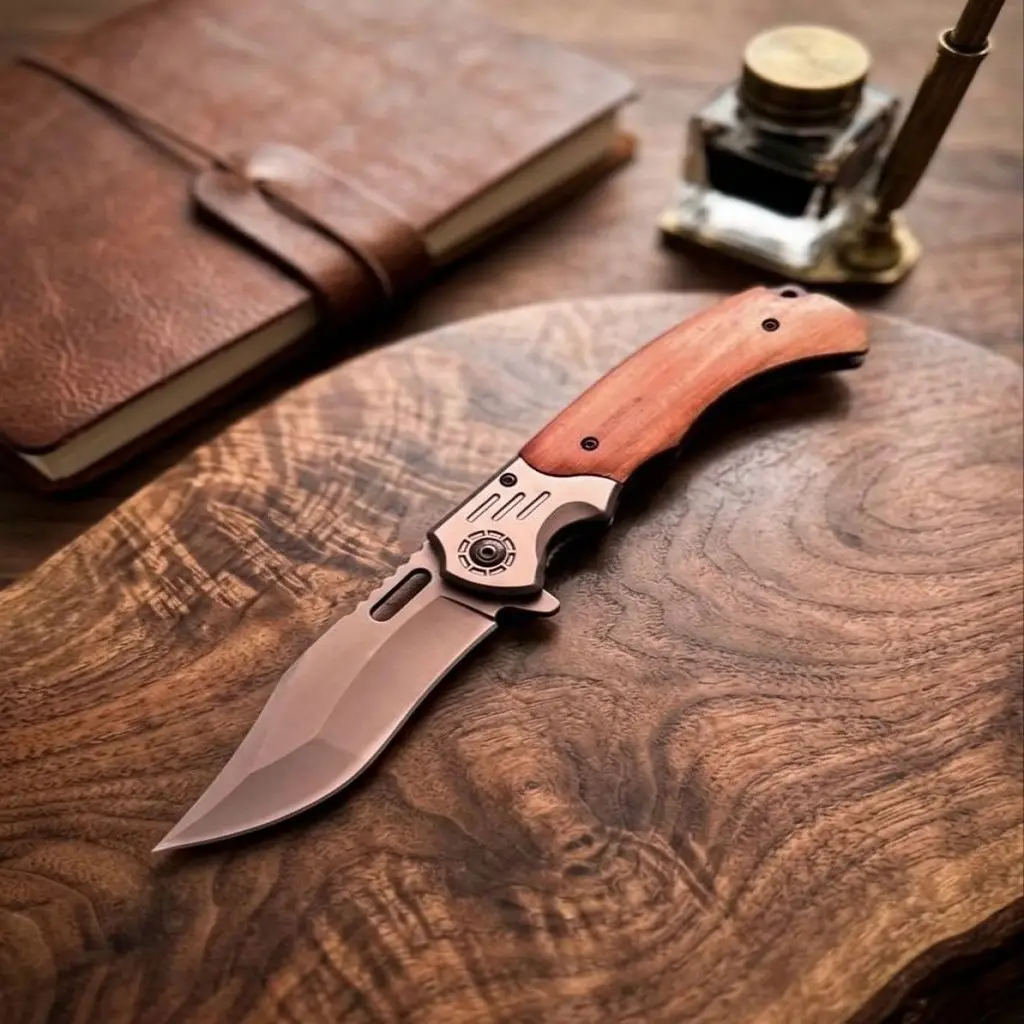 Bu özel tasarım otomatik çakı, Recurve Drop Point namlu yapısı sayesinde hem kesme hem de delme işlemlerinde üstün performans sergiler. 60 HRC sertlik derecesine sahip 440C çelik namlusu, ağız dayanıklılığını uzun süre korurken korozyona karşı ekstra direnç sağlar. Kahverengi ceviz sapı, ergonomik yapısıyla avucunuza tam oturur ve doğal bir tutuş hissi verir.