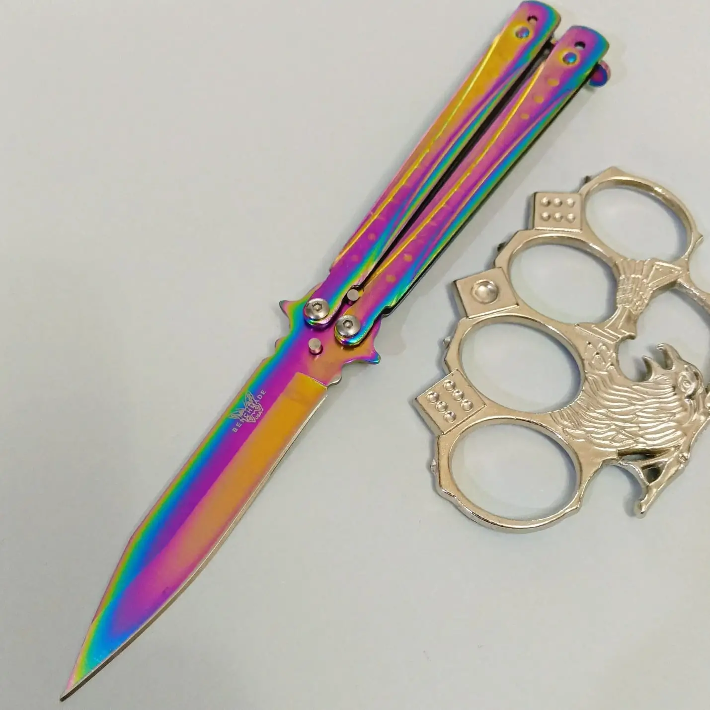 AlsepeteAvm Kare Desenli Gökkuşağı Punch Hediyeli Kelebek Çakı Özellikleri
