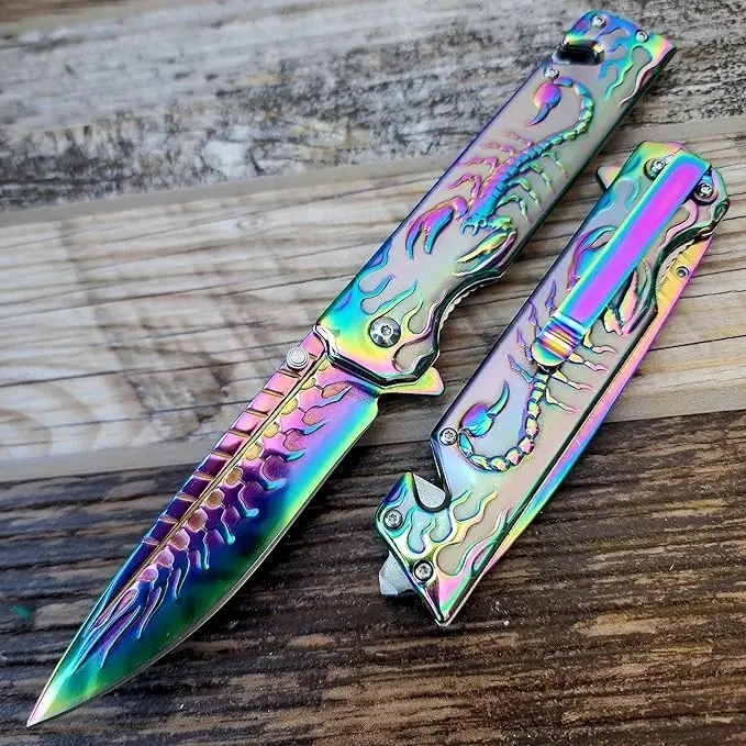 AlsepeteAvm S2076 Gökkuşağı Akrep İşlemeli Kurtarma Kamp Çakısı Özellikleri