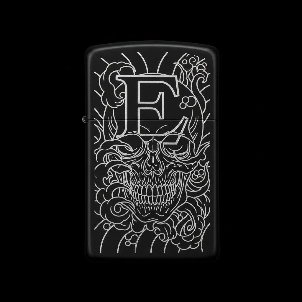 Benzinli Çakmak Kuru Kafa Figürlü E Harfli Tasarım - V36