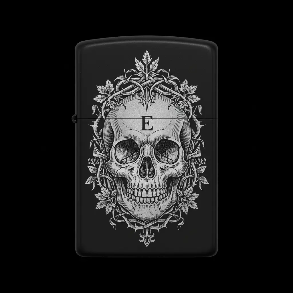 Benzinli Çakmak Kuru Kafa Figürlü E Harfli Tasarım - V48