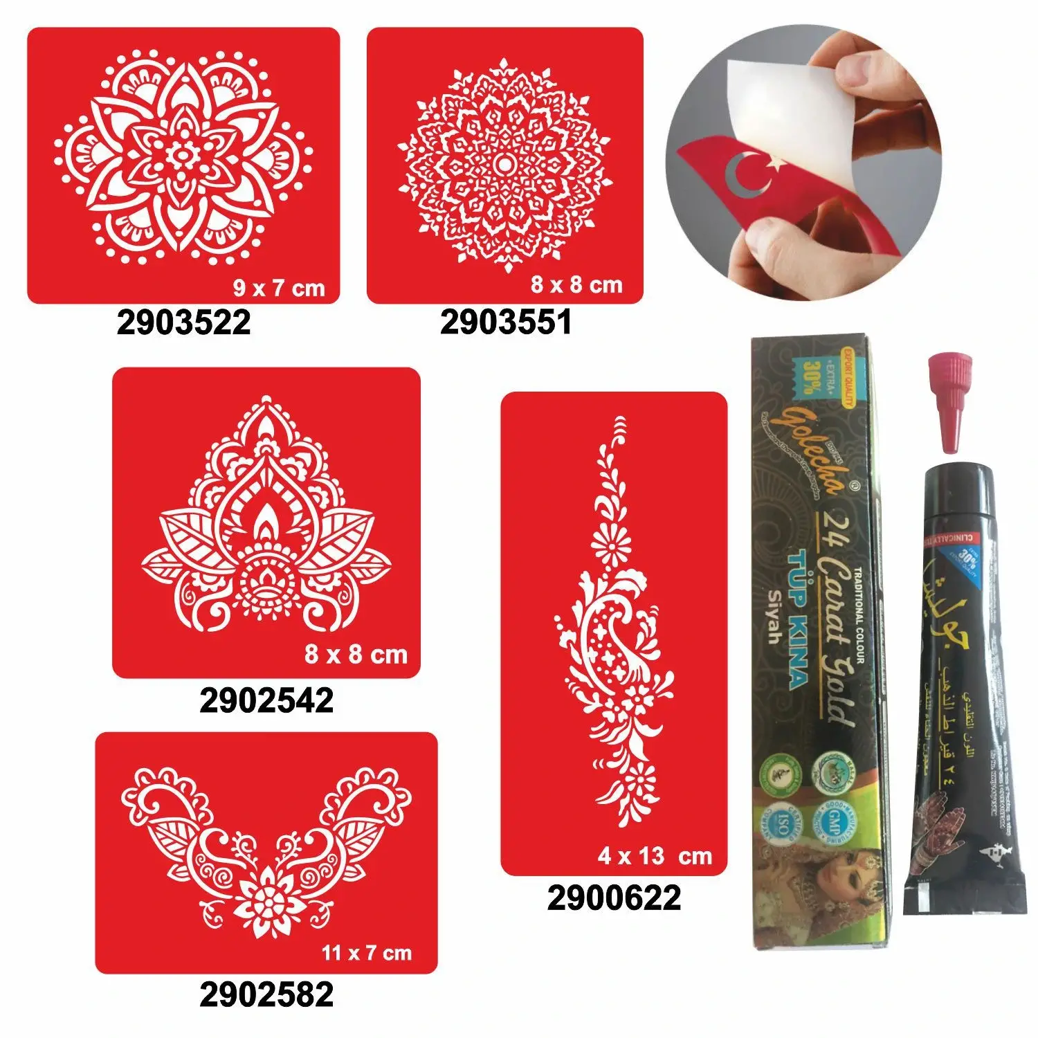 Siparişinizle birlikte  Resimde gösterilen Dövme Şablonları ve 1 Tüp Kına Gönderilir.