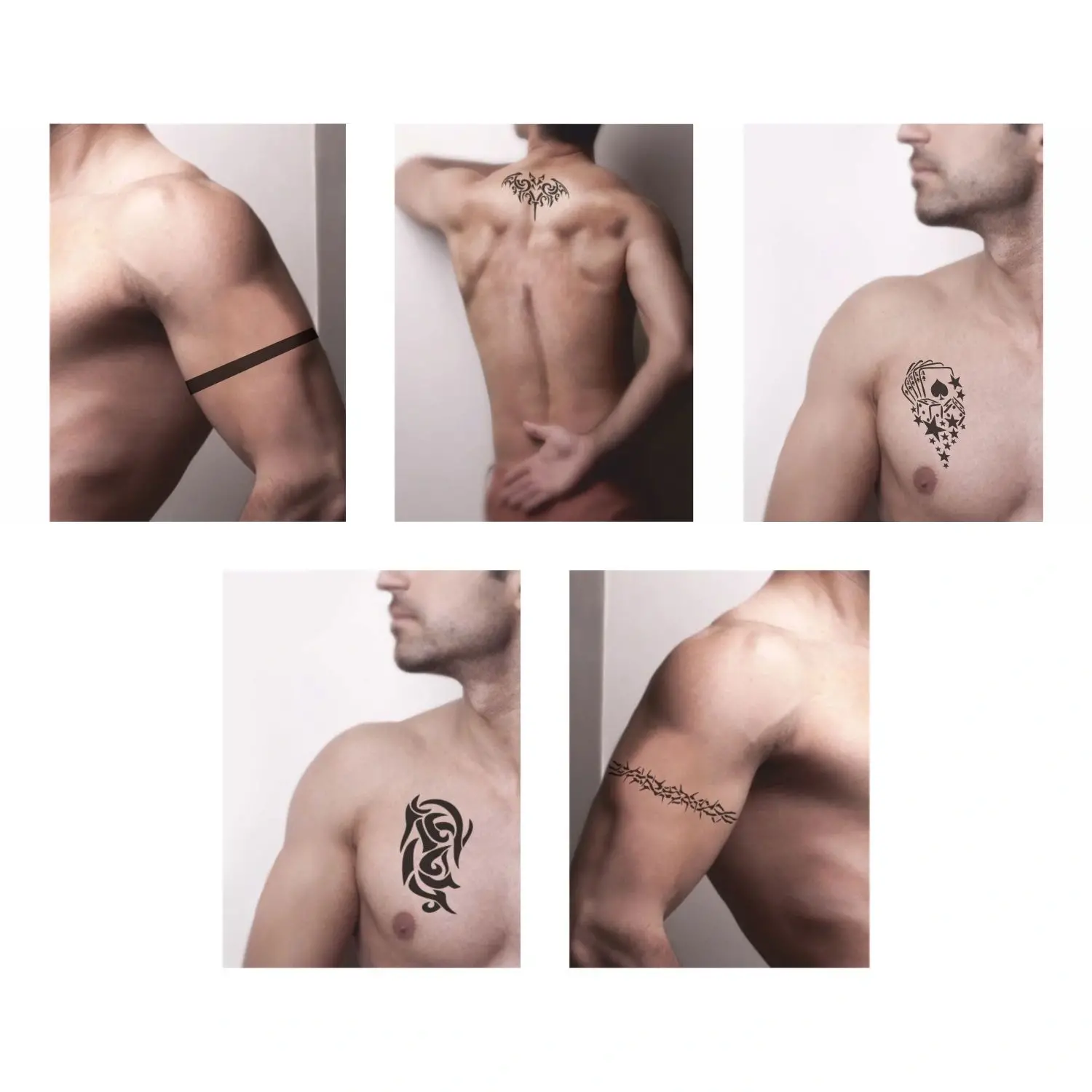 Güçlü Erkek Modelleri 5'li Set Geçici Dövme Kına Şablonu