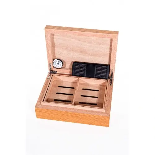 Humidor, puro severler için özel olarak tasarlanmış, şık ve kullanışlı bir saklama kutusudur. Zarif görünümü ve ideal kapasitesiyle hem evde hem ofiste puro keyfinizi tamamlar.● Renk: Kahve-Siyah● Orijinal İspanyol sedir ağacı● Kapak gövde arası geçme kilit sistemi● Dahili nemlendirici● Dahili analog nem ölçer● Hareketli ayırıcı● Ebat (Y x G x D) : 9.5 x 30 x 22 cm● Kapasite : 50 adet puro