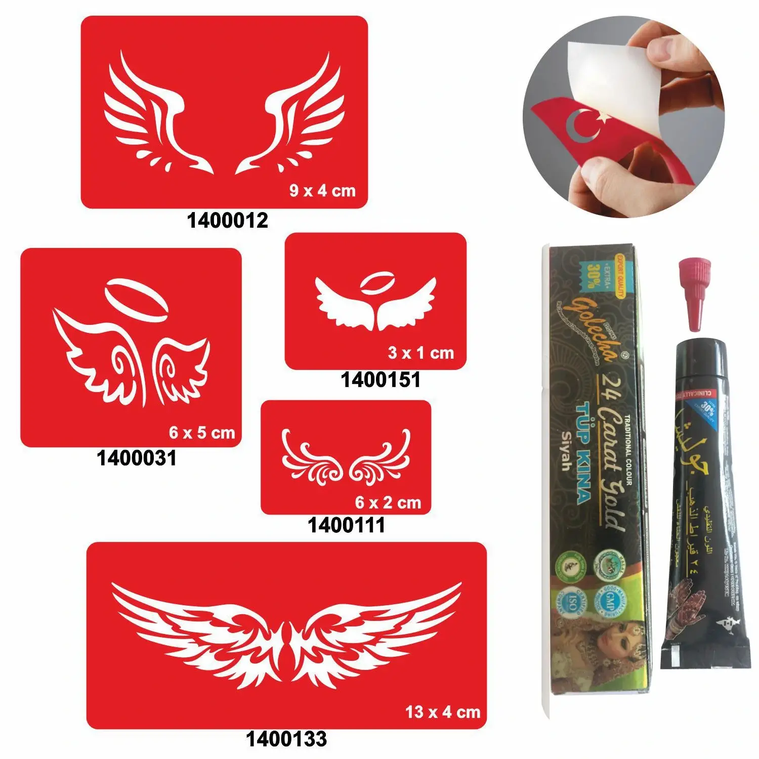 Siparişinizle birlikte  Resimde gösterilen Dövme Şablonları ve 1 Tüp Kına Gönderilir.