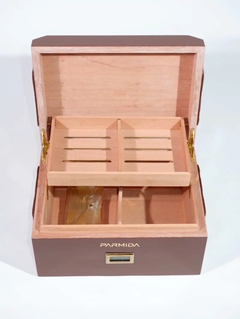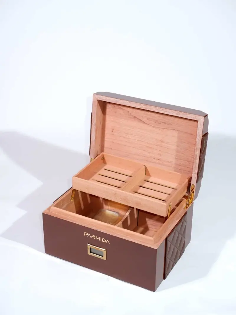 AlsepeteAvm Humidor, zarif tasarımı ve sağlam yapısıyla puro koleksiyonunuza şıklık ve koruma sunar. Hem estetik hem fonksiyonel detaylarıyla öne çıkar.İç yüzey doğal sedir ağacı kaplamasıyla tamamlanmıştır; bu sayede nem dengesi sağlanarak puroların aromasını ve tazeliğini uzun süre korur.Hassas higrometre ve sızdırmaz conta sistemi ile ideal nem seviyesi kolayca elde edilir ve korunur.Parlak dış kaplama ve yumuşak renk tonları, bulunduğu ortama şık bir dokunuş katar.Ayarlanabilir iç bölmeler, fark...