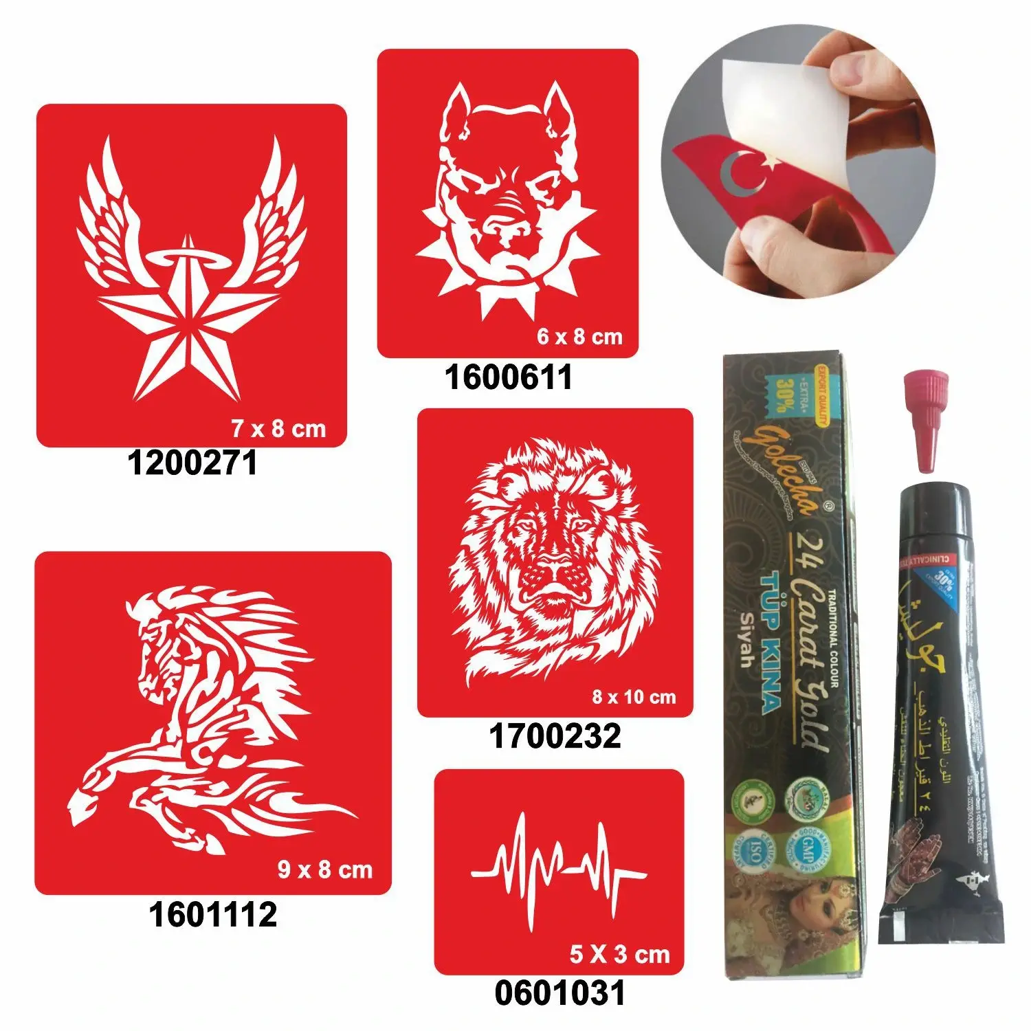 Siparişinizle birlikte  Resimde gösterilen Dövme Şablonları ve 1 Tüp Kına Gönderilir.