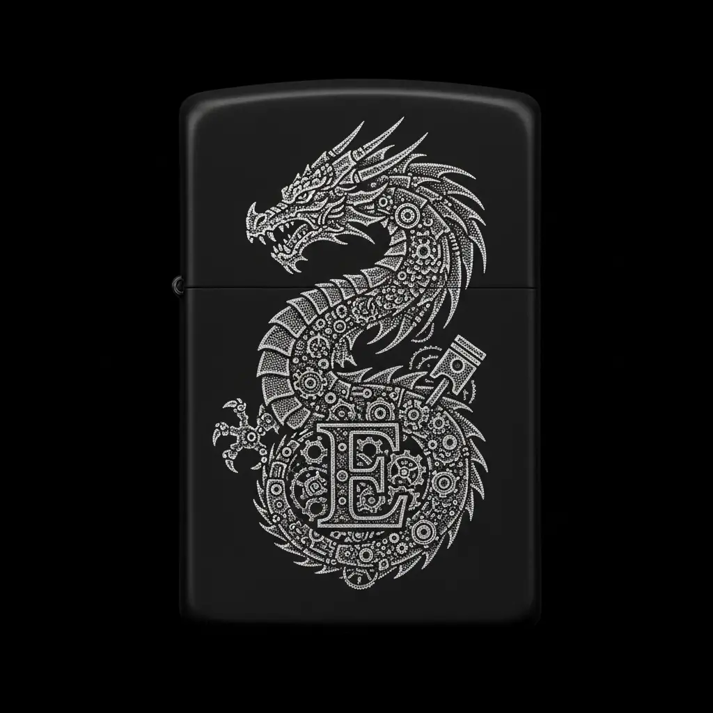 Benzinli Çakmak Ejderha Figürlü E Harfli Tasarım - V15