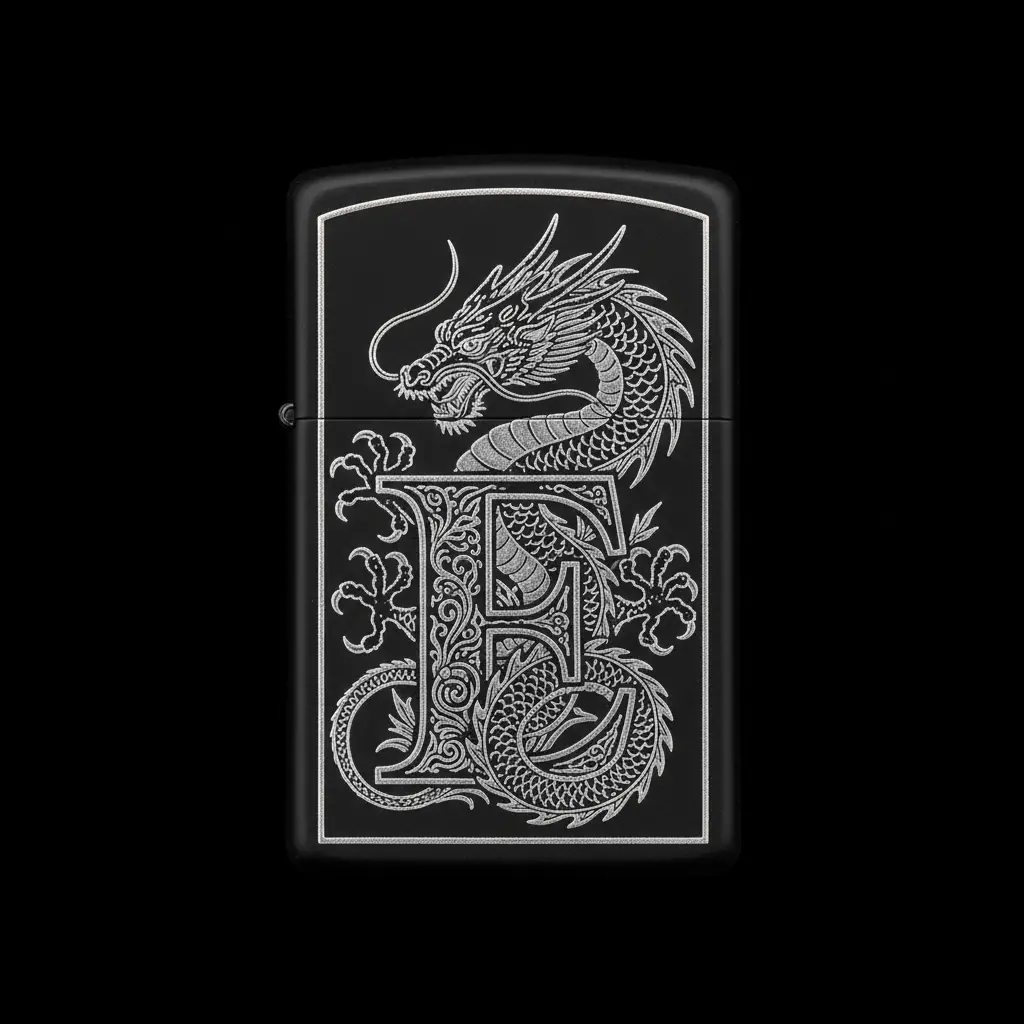 Benzinli Çakmak Ejderha Figürlü E Harfli Tasarım - V20