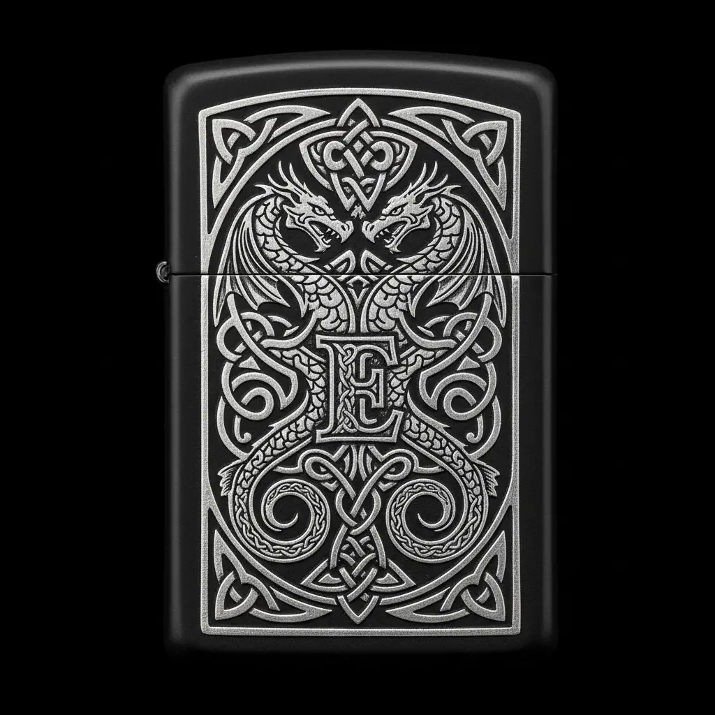 Benzinli Çakmak Ejderha Figürlü E Harfli Tasarım - V3