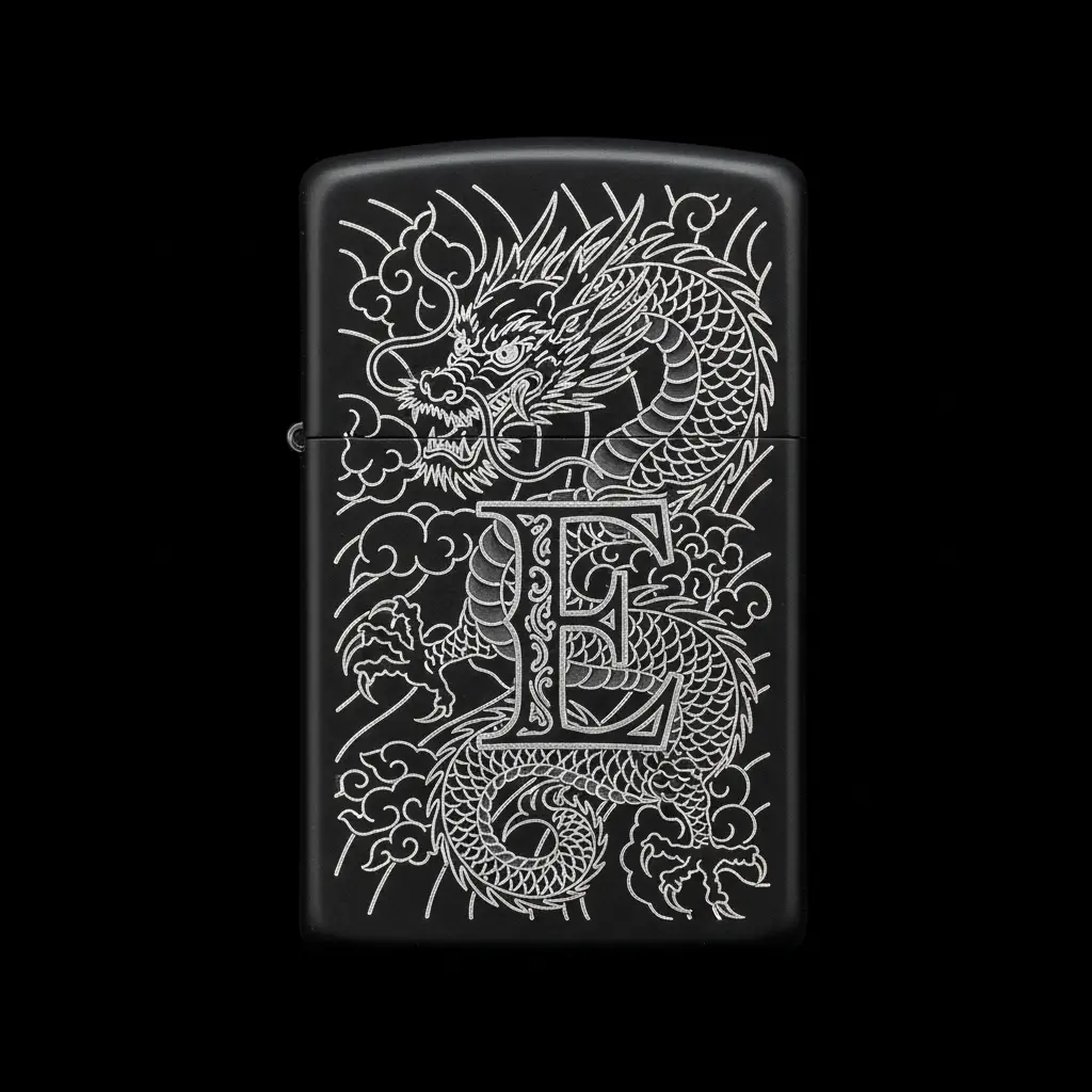Benzinli Çakmak Ejderha Figürlü E Harfli Tasarım - V37