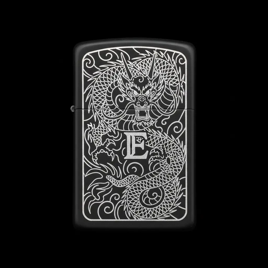 Benzinli Çakmak Ejderha Figürlü E Harfli Tasarım - V38