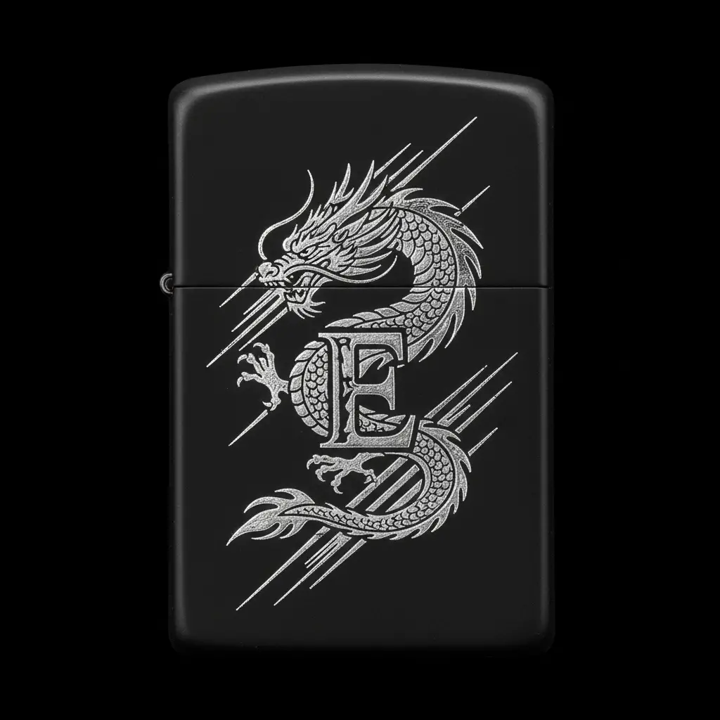 Benzinli Çakmak Ejderha Figürlü E Harfli Tasarım - V40