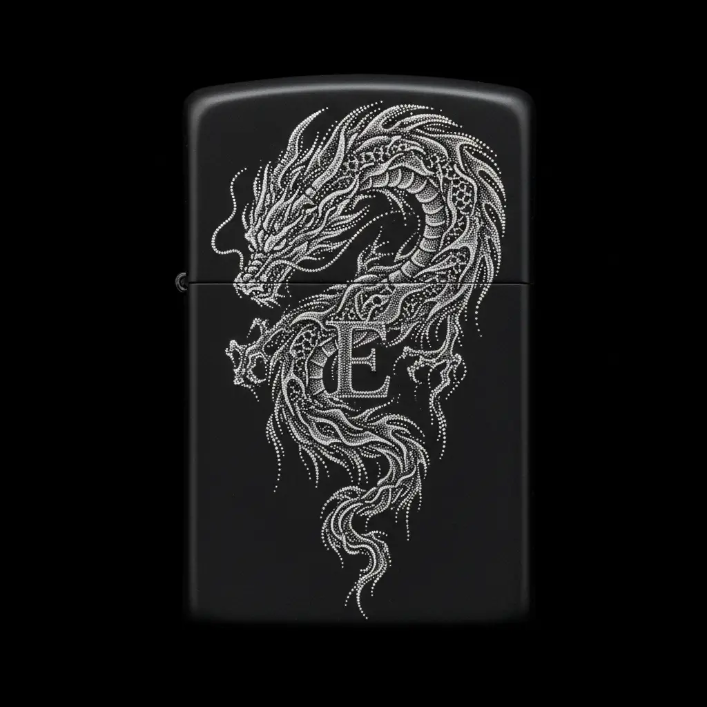 Benzinli Çakmak Ejderha Figürlü E Harfli Tasarım - V51