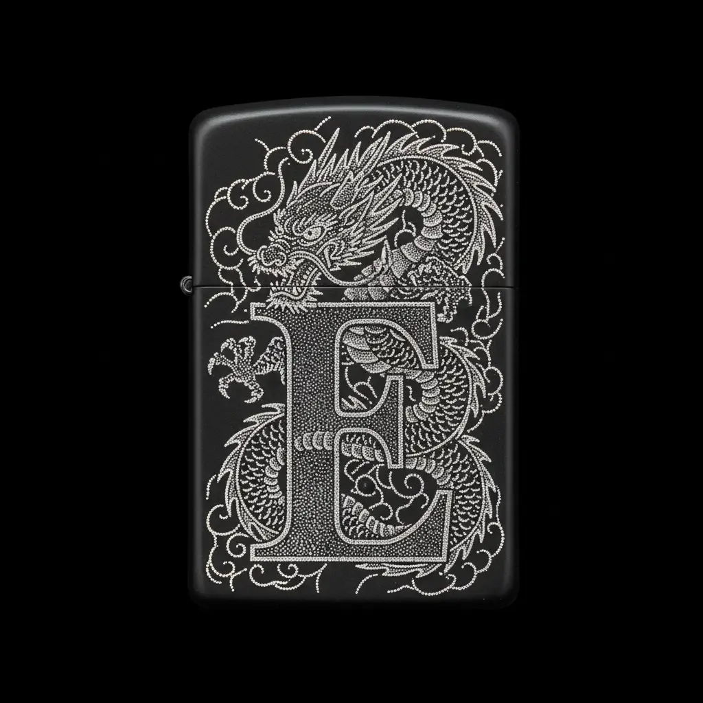 Benzinli Çakmak Ejderha Figürlü E Harfli Tasarım - V71