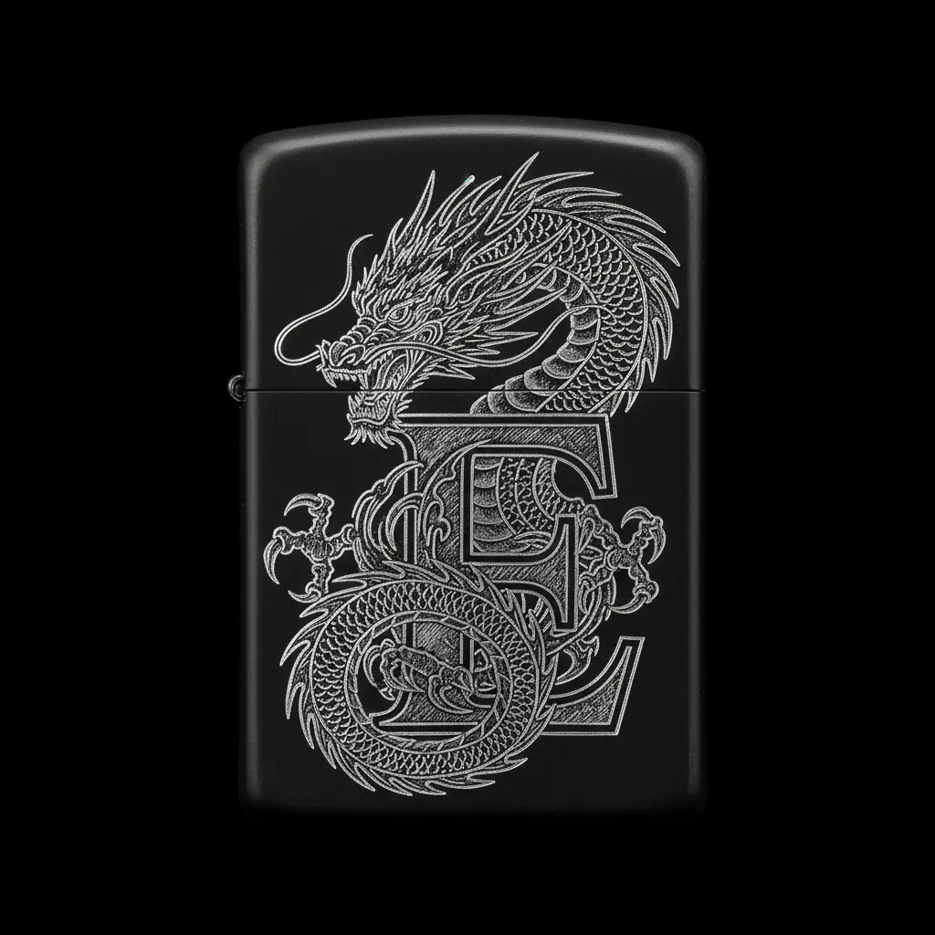 Benzinli Çakmak Ejderha Figürlü E Harfli Tasarım - V91